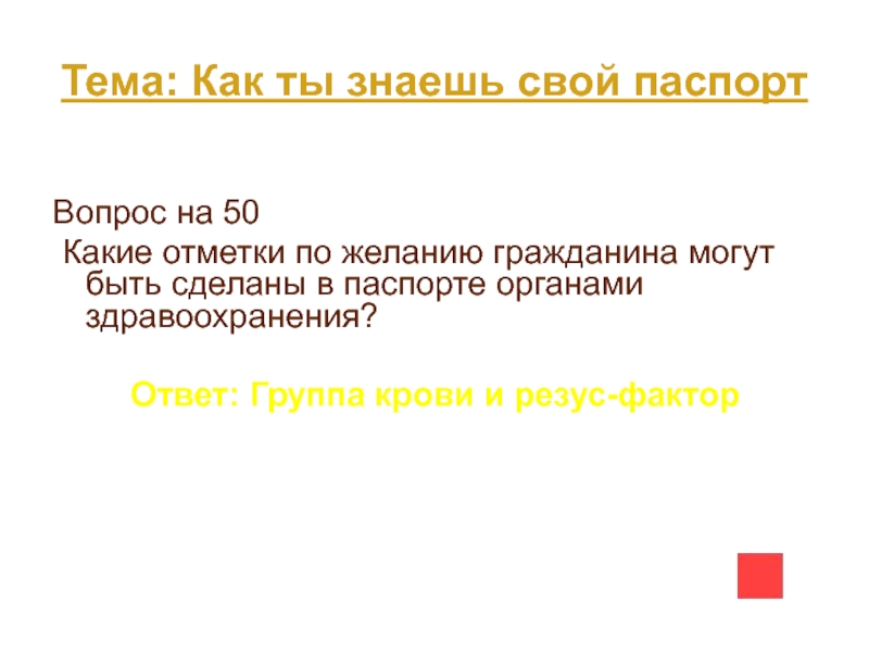 Слайд 37Тема: Как ты знаешь свой паспорт