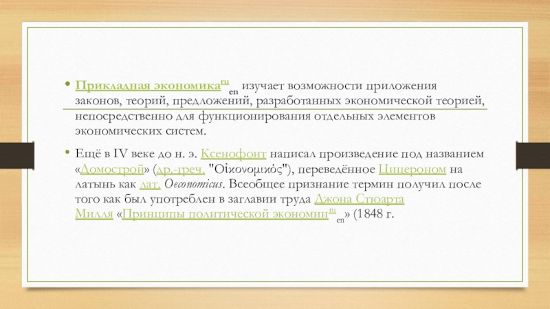 Слайд 3Прикладная экономикаruen изучает возможности приложения законов, теорий, предложений, разработанных экономической теорией, непосредственно