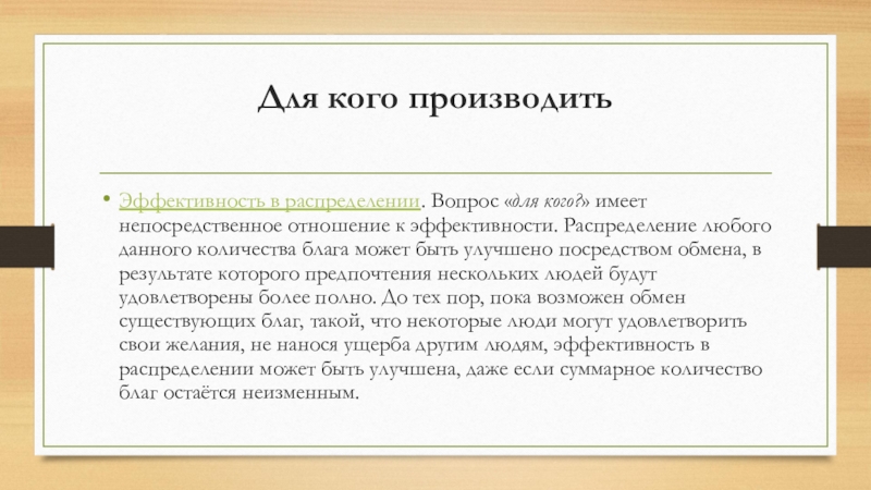 Эффективность в распределении. Вопрос «для кого?» имеет непосредственное отношение
