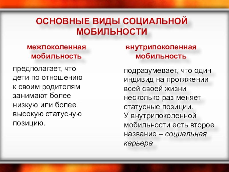 Слайд 8ОСНОВНЫЕ ВИДЫ СОЦИАЛЬНОЙ МОБИЛЬНОСТИ