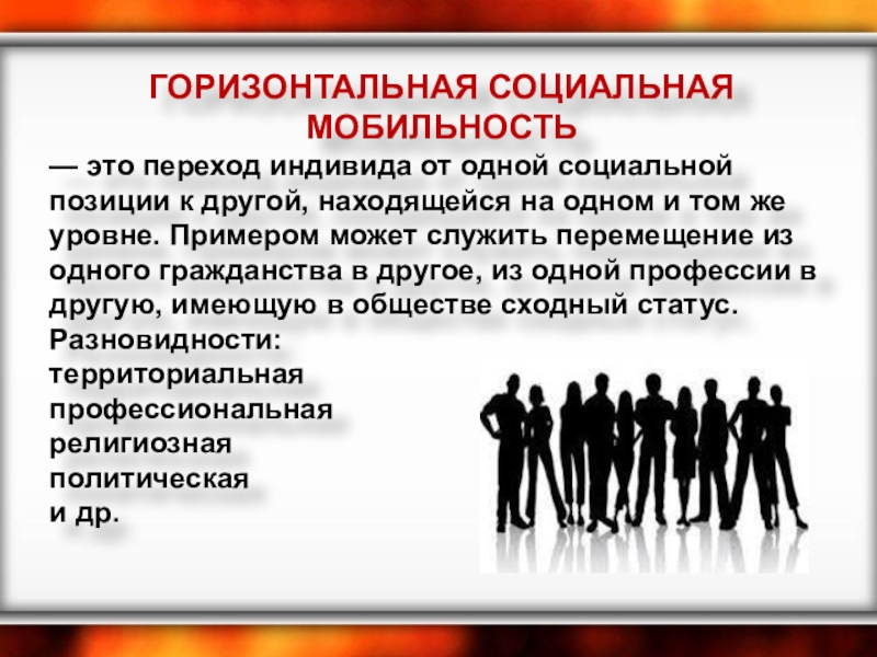 Слайд 5ГОРИЗОНТАЛЬНАЯ СОЦИАЛЬНАЯ МОБИЛЬНОСТЬ
