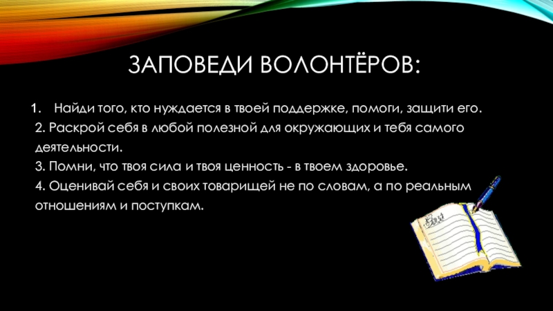 Слайд 5ЗАПОВЕДИ ВОЛОНТЁРОВ: