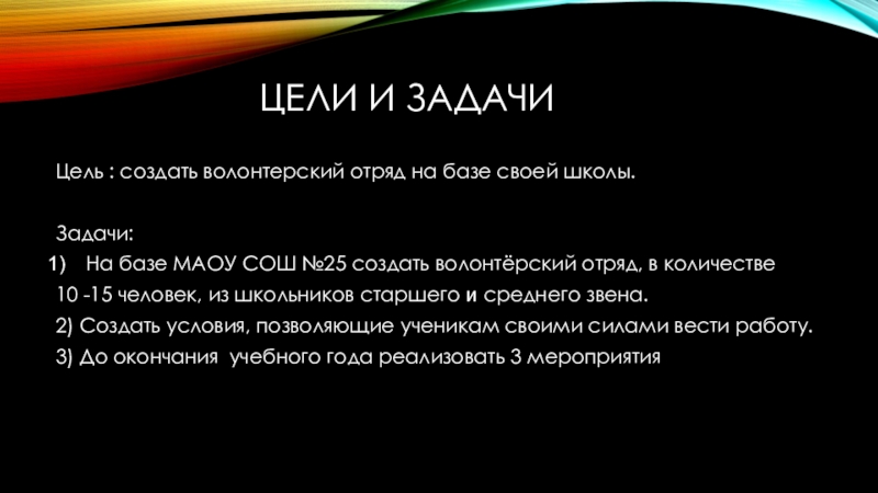 На базе МАОУ СОШ №25 создать волонтёрский отряд, в количестве