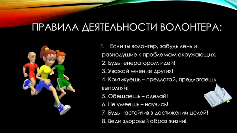 Слайд 6ПРАВИЛА ДЕЯТЕЛЬНОСТИ ВОЛОНТЕРА: