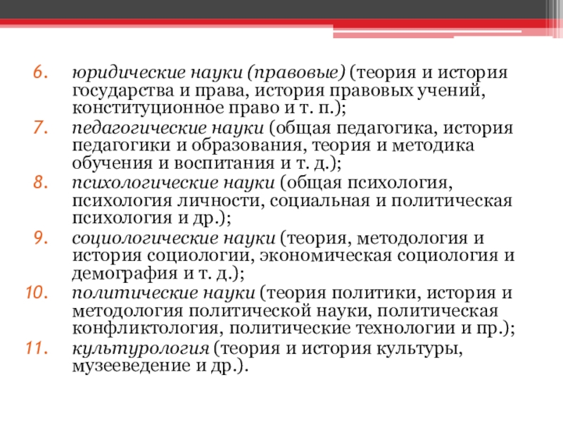 Слайд 6юридические науки (правовые) (теория и история государства и права, история правовых