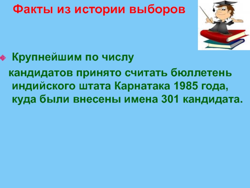 считать бюллетень индийского штата Карнатака 1985 года, куда были внесены имена 301 кандидата.