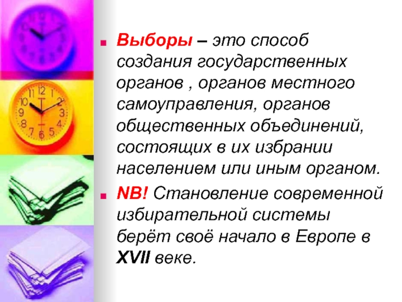 Выборы – это способ создания государственных органов , органов местного самоуправления,
