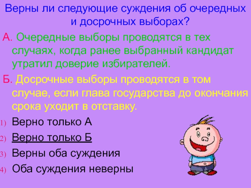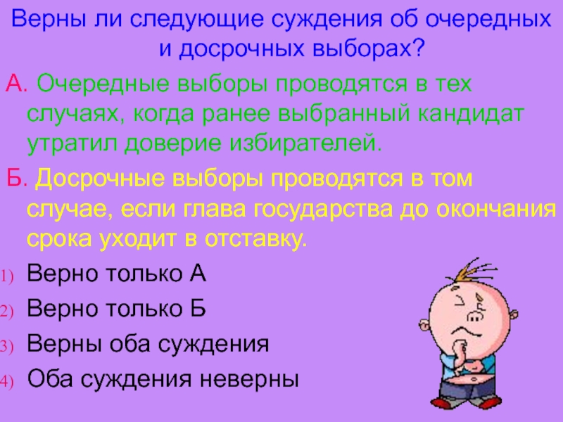 Верны ли следующие суждения об очередных и досрочных выборах?