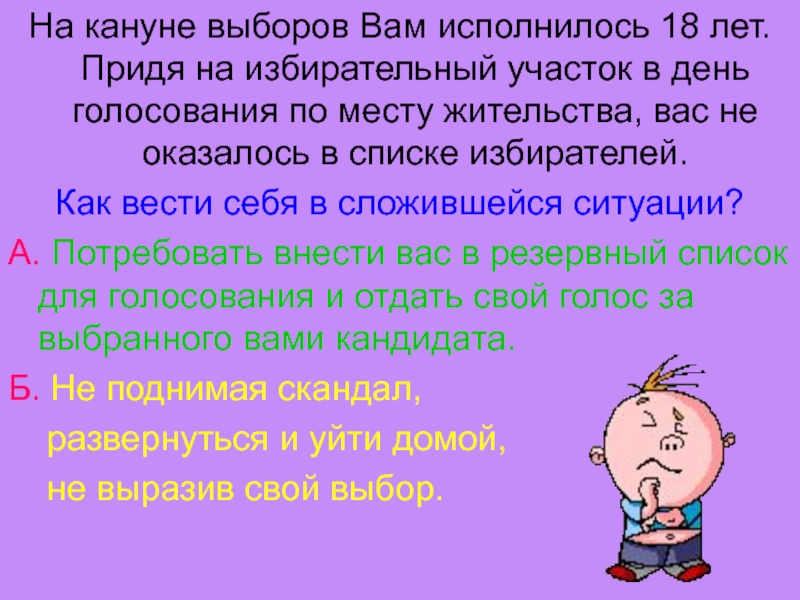 На кануне выборов Вам исполнилось 18 лет. Придя на избирательный участок