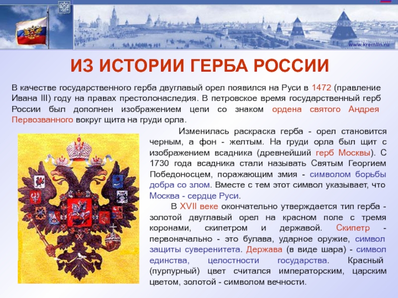 Слайд 8ИЗ ИСТОРИИ ГЕРБА РОССИИ
