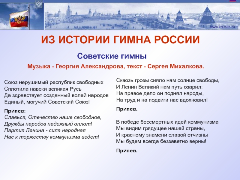 Слайд 17ИЗ ИСТОРИИ ГИМНА РОССИИ
