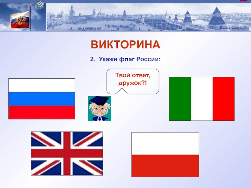 ВИКТОРИНА2. Укажи флаг России:Твой ответ, дружок?!