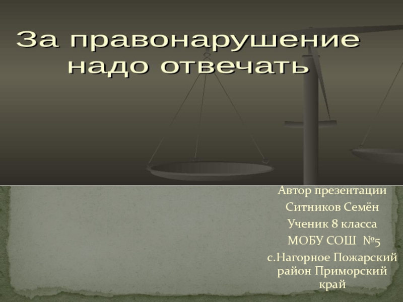 Презентация, доклад по обществознанию ЗА ПРАВОНАРУШЕНИЯ НАДО ОТВЕЧАТЬ Ситников Семен 8 класс