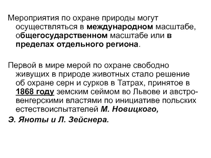 Слайд 10Мероприятия по охране природы могут осуществляться в международном масштабе, общегосударственном масштабе