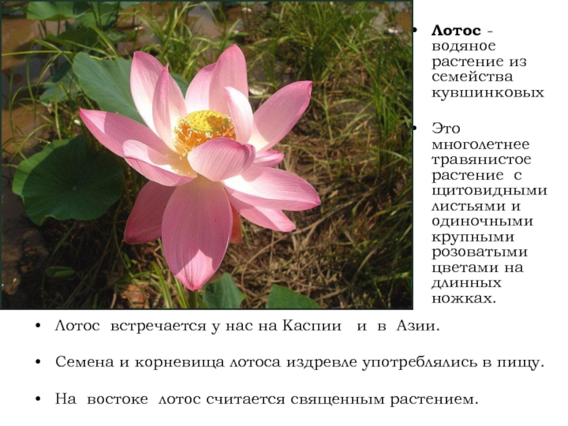 Слайд 21Лотос встречается у нас на Каспии и в Азии.