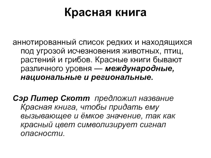 растений и грибов. Красные книги бывают различного уровня — международные, национальные и региональные.