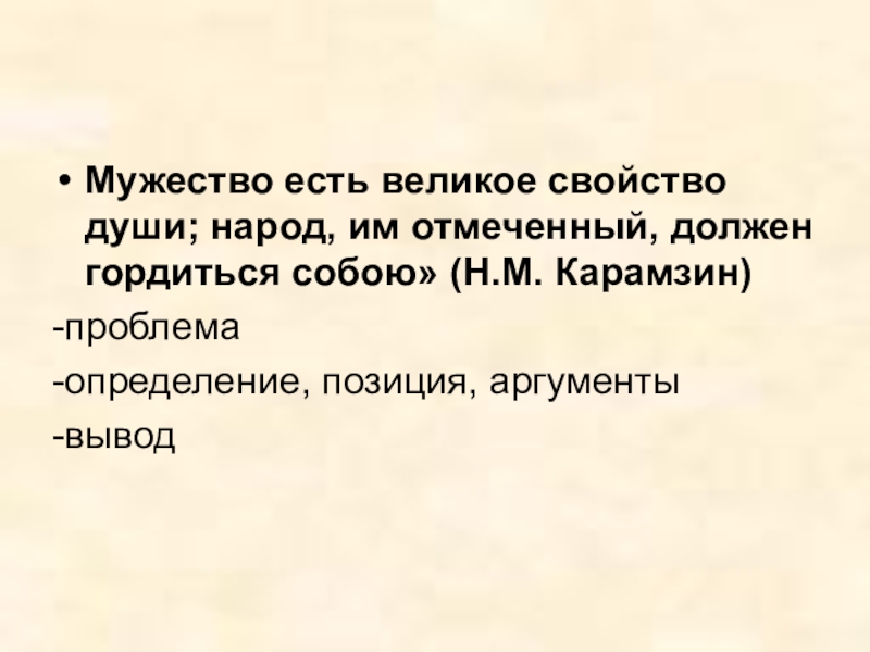 Мужество есть великое свойство души; народ, им отмеченный, должен гордиться собою» (Н.М. Карамзин) -проблема-определение, позиция, аргументы-вывод