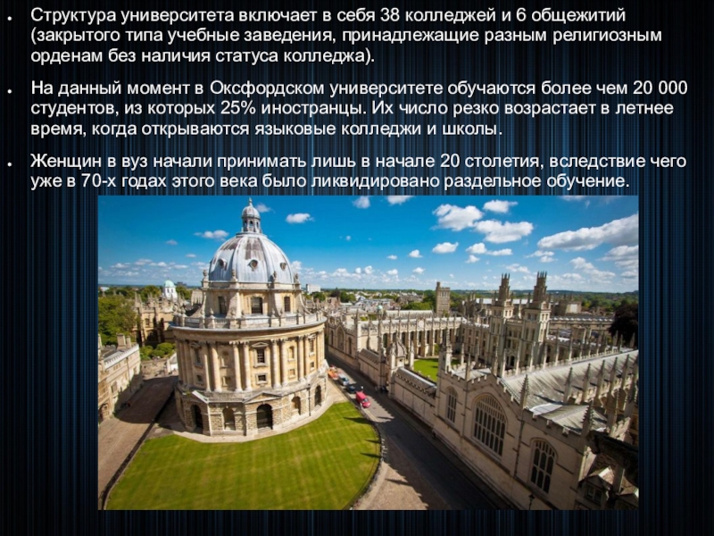 Слайд 23О́ксфордский университе́т (англ. University of Oxford) — университет, расположенный в городе