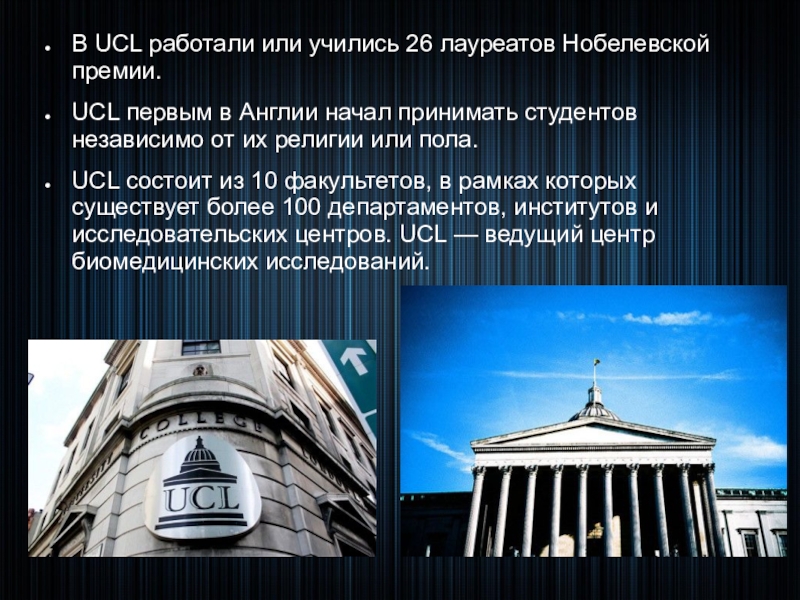 Слайд 35В UCL работали или учились 26 лауреатов Нобелевской премии.