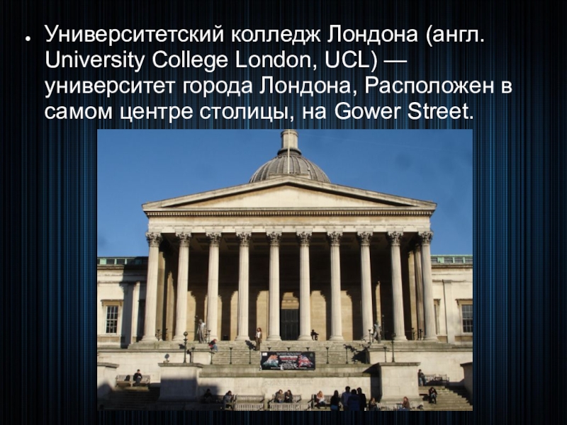 Слайд 34Университетский колледж Лондона (англ. University College London, UCL) — университет города