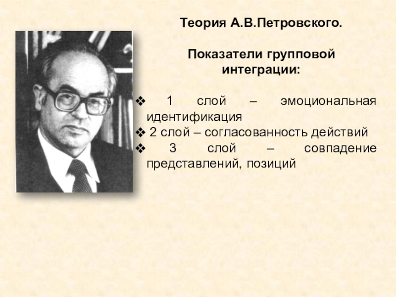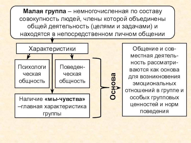 Общение и сов-местная деятель-ность рассматри-ваются как основа для возникновения эмоциональных отношений в группе и особых групповых ценностей и норм поведения
