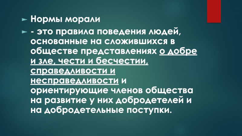 Нормы морали - это правила поведения людей, основанные на сложившихся в обществе представлениях о добре и зле,