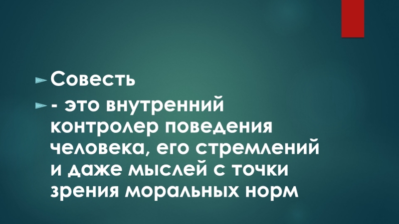 Совесть - это внутренний контролер поведения человека, его стремлений и даже мыслей с точки зрения моральных норм