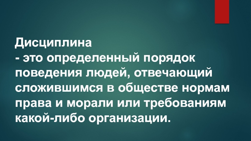 Дисциплина - это определенный порядок поведения людей, отвечающий сложившимся в обществе нормам права и морали или требованиям