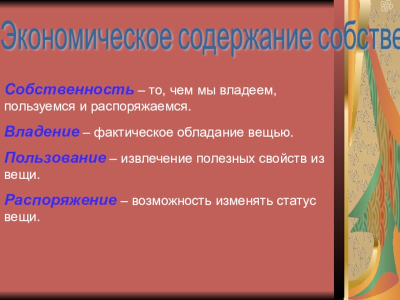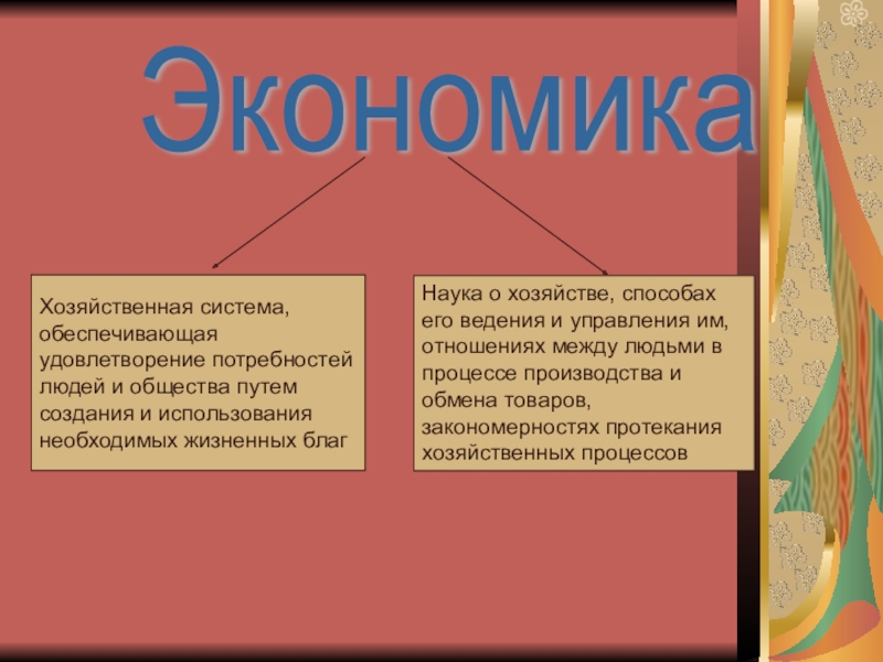Наука о хозяйстве, способах его ведения и управления им, отношениях между людьми в процессе производства и обмена товаров, закономерностях протекания хозяйственных процессов