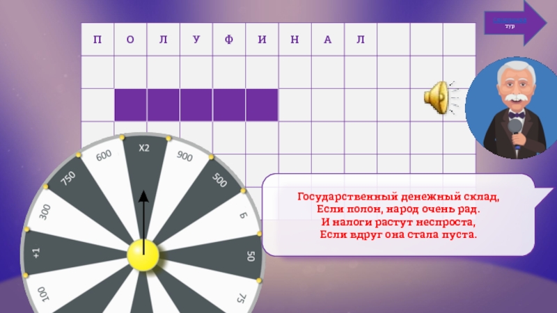 Игроки, победившие в своих раундах, выходят в полуфинал. Игрок, победивший в этом раунде, считается победителем игры. Он может выбрать призы на заработанные очки (количество набранных игроками очков нигде не отображается, а сумму очков, заработанных победителем игры, озвучивает ведущий).
