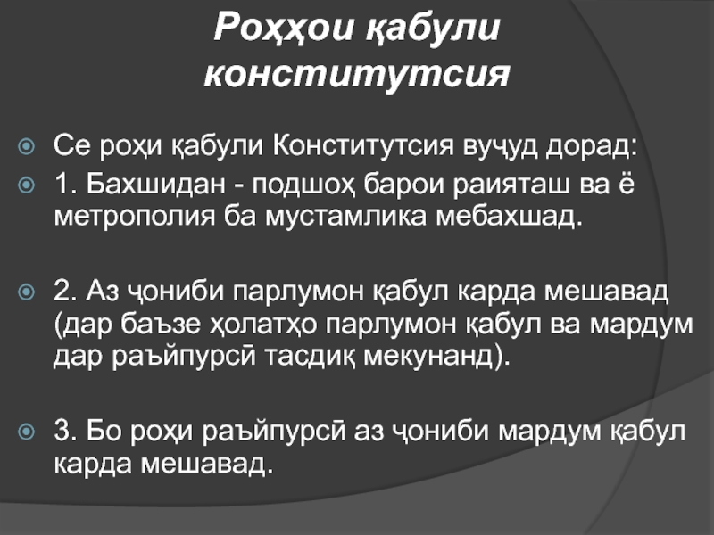 Сарқонуни Ҷумхурии Тоҷикистон – 6 ноябри соли 1994 тариқи райъпурсии умимихалқӣ қабул карда шудааст
