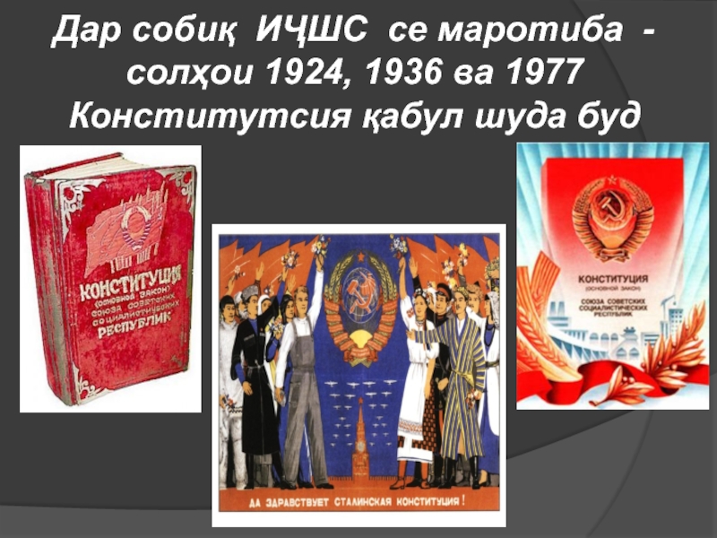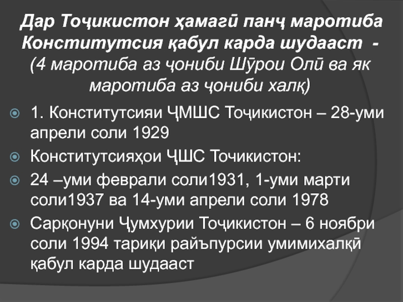 1. Конститутсияи ҶМШС Тоҷикистон – 28-уми апрели соли 1929