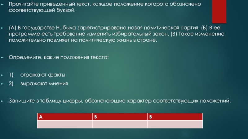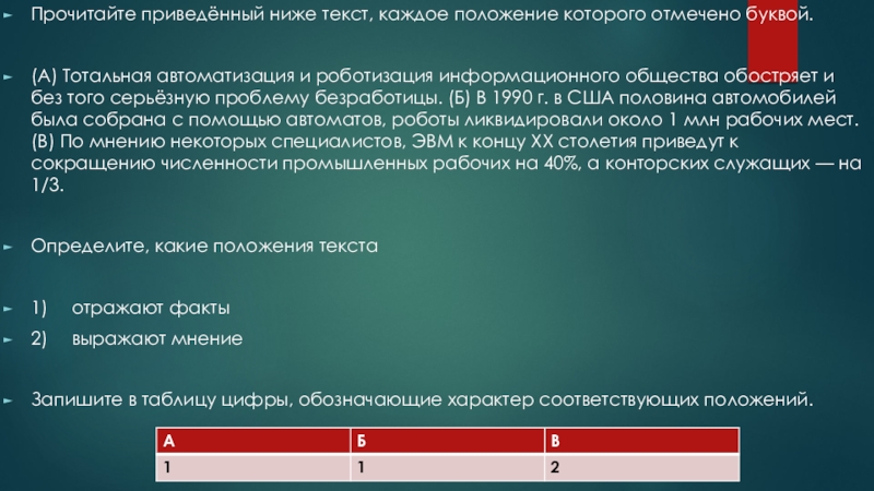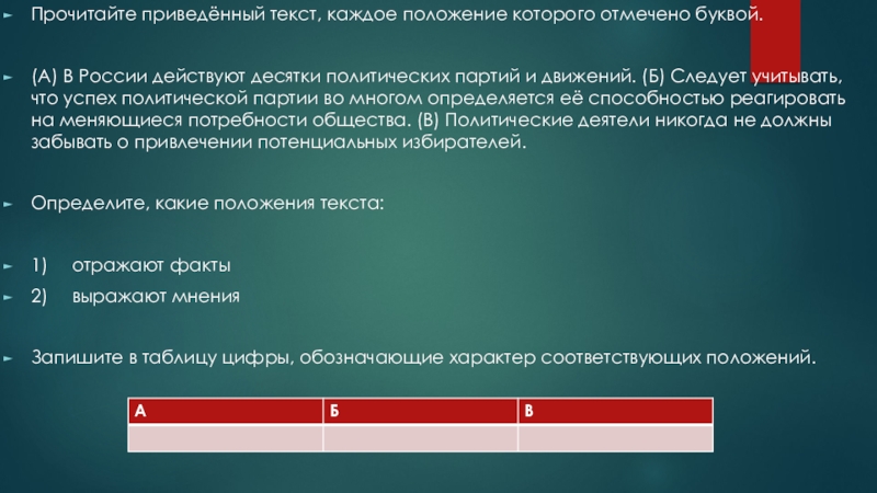 Слайд 66Прочитайте приведённый ниже текст, каждое положение которого отмечено буквой.