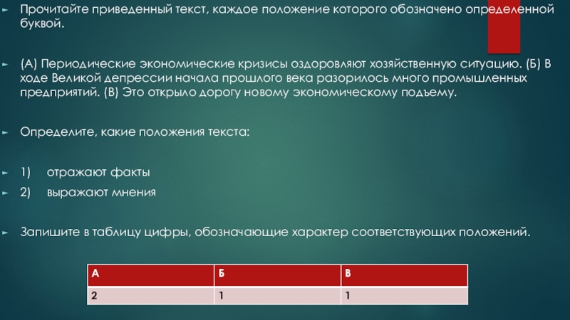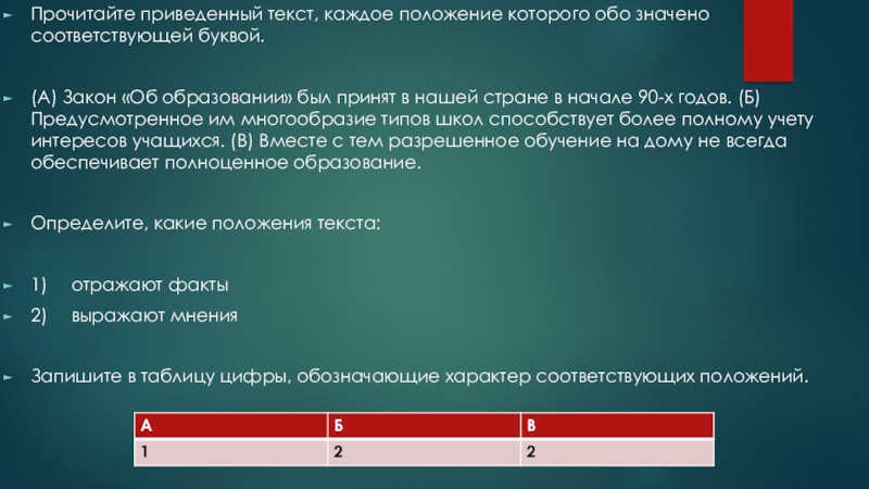 Слайд 28Прочитайте приведенный текст, каждое положение которого обозначено соответствующей буквой.