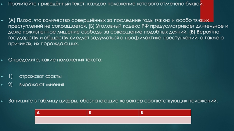 Слайд 46Прочитайте приведенный текст, каждое положение которого отмечено буквой.