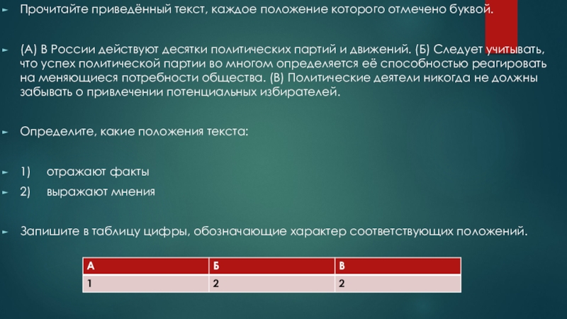 Слайд 22Прочитайте приведённый текст, каждое положение которого отмечено буквой.