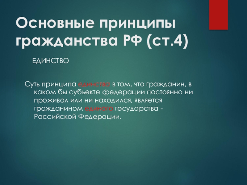 Слайд 9Основные принципы гражданства РФ (ст.4)