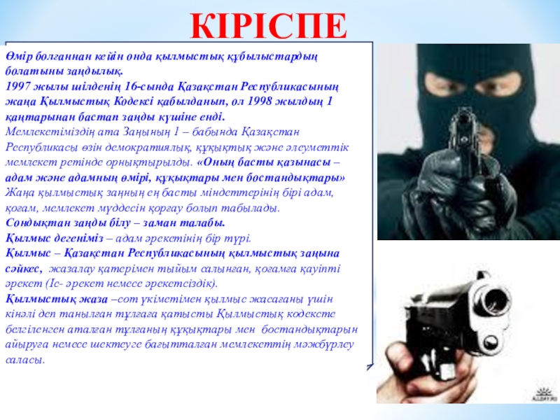 Өмір болғаннан кейін онда қылмыстық құбылыстардың болатыны заңдылық.