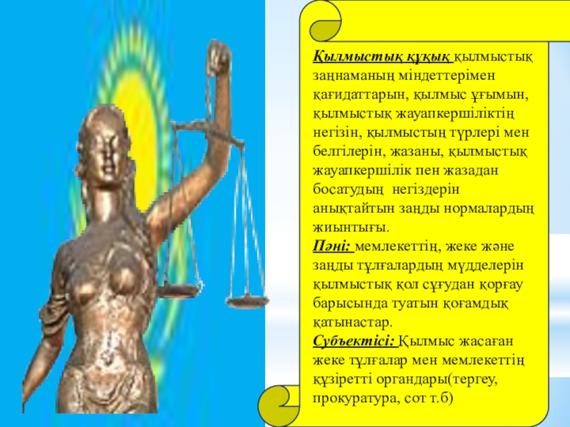 Қылмыс – Қазақстан Республикасының қылмыстық заңына сәйкес, жазалау қатерімен тыйым салынған, қоғамға қауіпті әрекет (Іс- әрекет немесе әрекетсіздік).