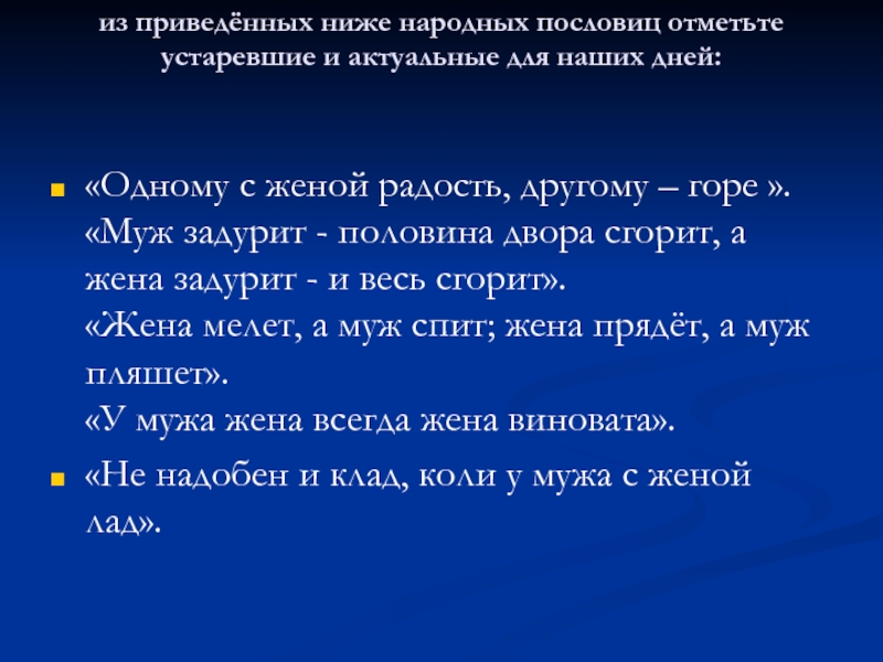 «Жена мелет, а муж спит; жена прядёт, а муж пляшет».