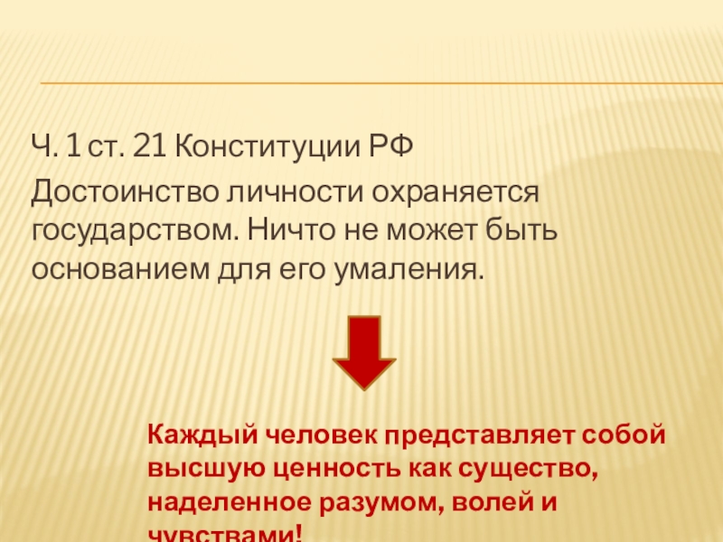 Каждый человек представляет собой высшую ценность как существо, наделенное разумом, волей и чувствами!