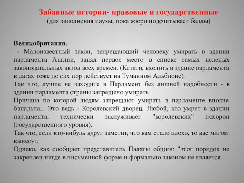 (для заполнения паузы, пока жюри подсчитывает баллы)