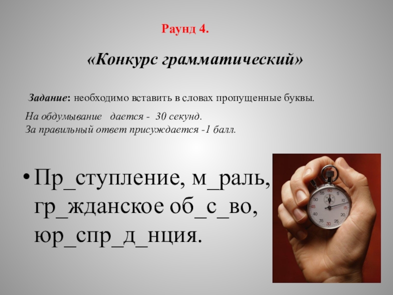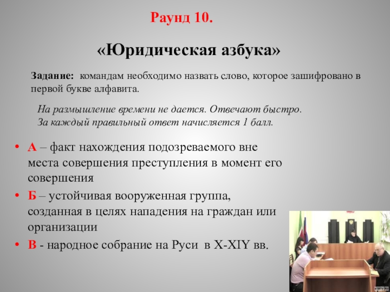Задание: командам необходимо назвать слово, которое зашифровано в первой букве алфавита.