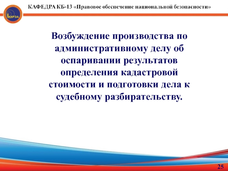 Слайд 25Возбуждение производства по административному делу об оспаривании результатов определения кадастровой стоимости