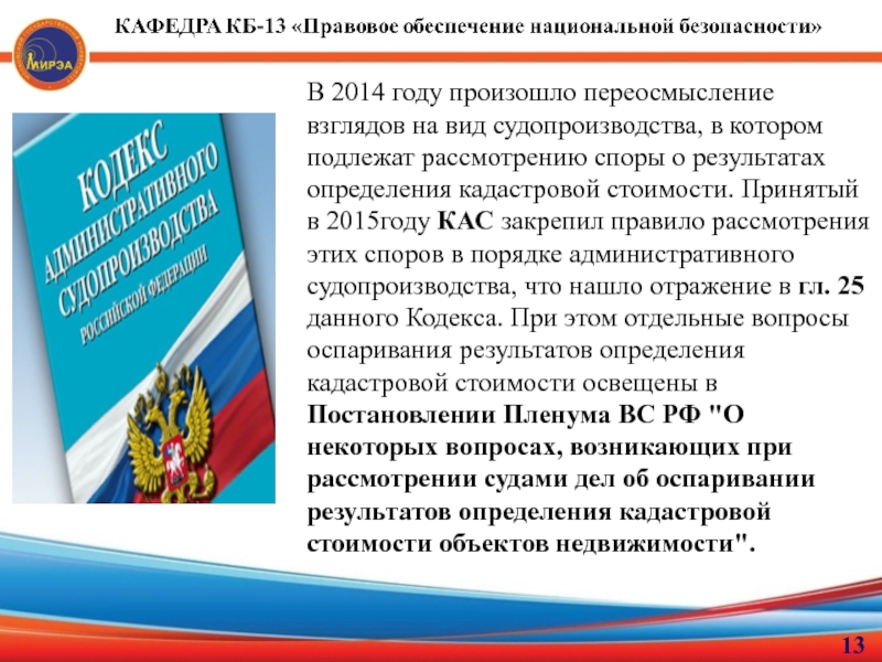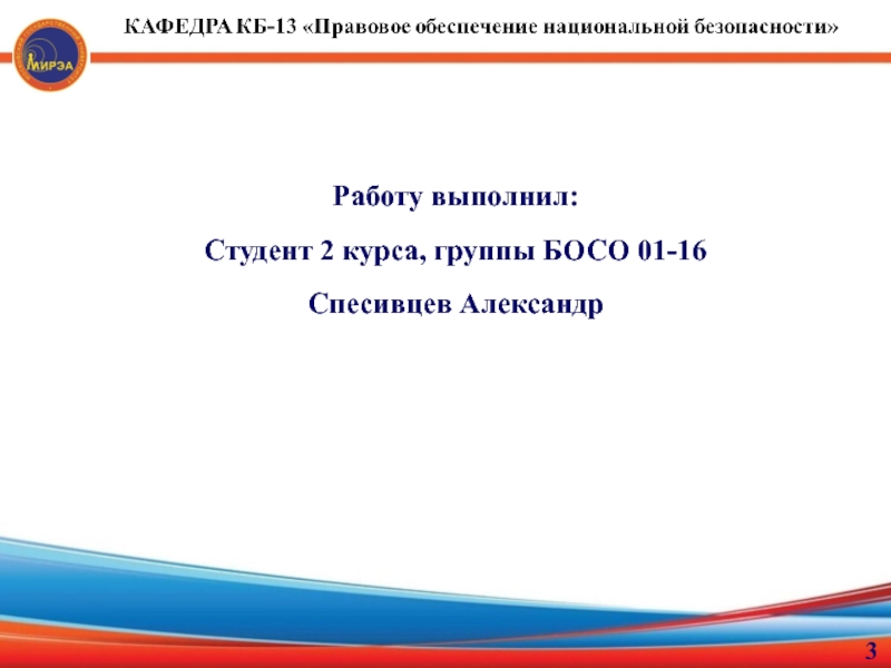 Слайд 1КАФЕДРА КБ-13 «Правовое обеспечение национальной безопасности»