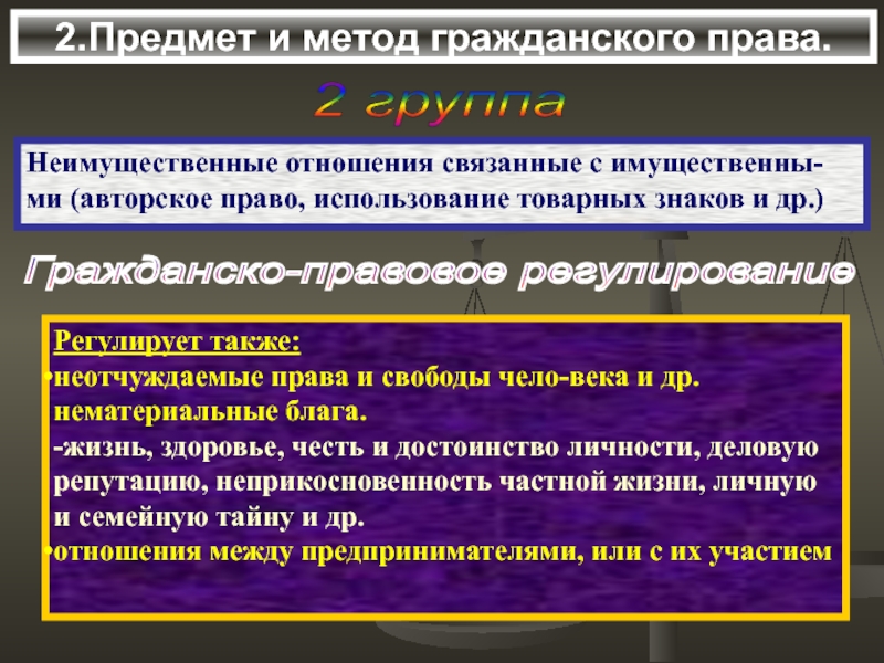 Регулирующие отношения, составляющие предмет гражданского права.
