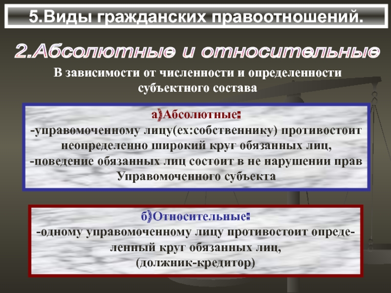 управомоченная (имеющая права) и обязанная стороны.