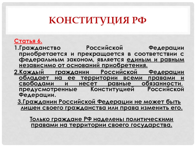 1.Гражданство Российской Федерации приобретается и прекращается в соответствии