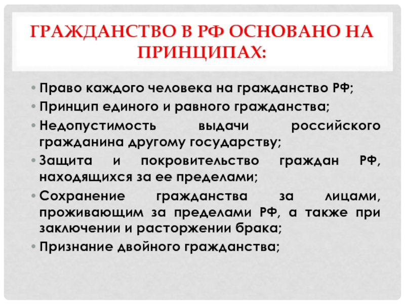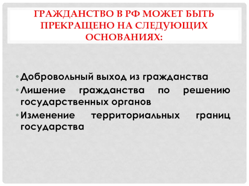 Слайд 13Гражданство в РФ может быть прекращено на следующих основаниях: