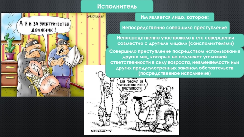 Совершило преступление посредством использования других лиц, которые не подлежат уголовной ответственности в силу возраста, невменяемости или других предусмотренных законом обстоятельств (посредственное исполнение)